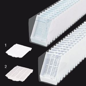 - Fabricados en POM, resistentes a la acción química de los solventes utilizados en histología.
